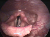 Τον λάρυγγα τον εξετάζουμε είτε με άκαμπτο ενδοσκόπιο από το στόμα είτε με εύκαμπτο λαρυγγοσκόπιο από τη μύτη (δείτε τις σχετικές εικόνες). Η εξέταση γίνεται με ταυτόχρονη βιντεοκαταγραφή ή φωτογράφηση της βλάβης, ώστε να παρακολουθείται η εξέλιξη της θεραπείας.