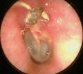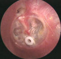 καλοήθης χρόνια ωτίτις (κεντρικό ρήγμα τυμπνικής μεμβράνης)